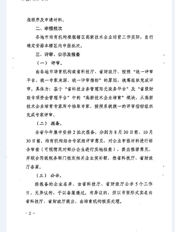 市级培育机构结合专家组评审意见,对企业申报材料进行综合审查(可视情况对部分企业进行实地核查),提出推荐意见,并联合同级税务部门核定相关企业奖补额,报省科技厅、省财政厅备案。2017年全省高新技术企业培育库入库集中安排2批次报备,分别为8月30日前、10月30日前。