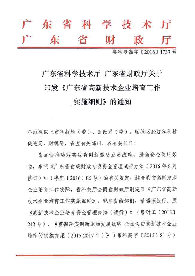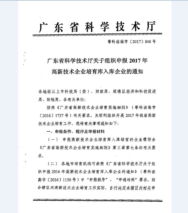 附件: 1.广东省科学技术厅关于组织申报2017年高新技术企业培育库入库企业的通知