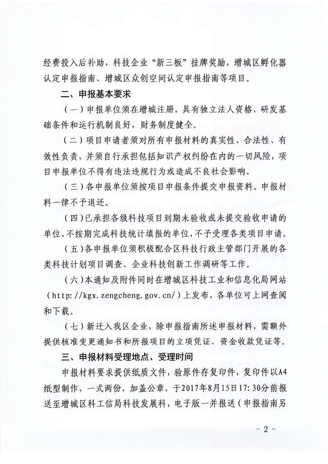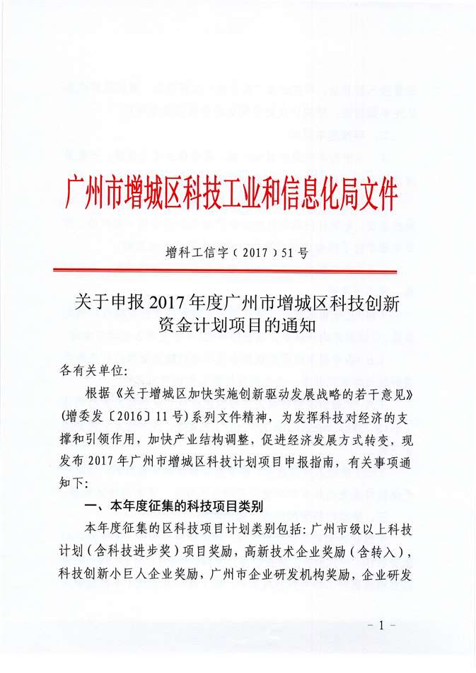 附件: 1.关于申报2017年度广州市增城区科技创新资金计划项目的通知