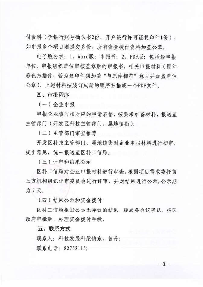 各有关单位: 根据《关于增城区加快实施创新驱动发展战略的若干意见》(增委发〔2016〕11号)系列文件精神,为发挥科技对经济的支撑和引领作用,加快产业结构调整,促进经济发展方式转变,现发布2017年广州市增城区科技计划项目申报指南,有关事项通知下: 一、本年度征集的科技项目类别 本年度征集的区科技项目计划类别包括:广州市级以上科技计划(含科技进步奖)项目奖励,高新技术企业奖励(含转入),科技创新小巨人企业奖励,广州市企业研发机构奖励,企业研发经费投入后补助,科技企业“新三板”挂牌奖励,增城区孵化器认定申报指南、增城区众创空间认定申报指南等项目。 二、申报基本要求 (一)申报单位须在增城注册,具有独立法人资格,研发基础条件和运行机制良好,财务制度健全。 (二)项目申请者须对所有申报材料的真实性、合法性、有效性负责,并须自行承担包括知识产权纠纷在内的一切风险,项目申报单位不得有违法违规行为或造成不良社会影响。 (三)各申报单位须按项目申报条件提交申报资料。申报材料一律不予退还。 (四)已承担各级科技项目到期未验收或未提交验收申请的单位、不按期完成科技统计填报的单位,不予受理各类项目申请。 (五)各申报单位须积极配合区科技行政主管部门开展的各类科技计划项目调查、企业科技创新工作调研等工作。 (六)本通知及附件同时在增城区科技工业和信息化局网站(http://kgx.zengcheng.gov.cn/)上发布,各单位可上网查阅和下载。 (七)新迁入我区企业,除申报指南所述申报材料,需额外提供核准变更通知书和所报项目的立项凭证、资金收款凭证等。 三、申报材料受理地点、受理时间 申报材料要求提供纸质文件,验原件存复印件,复印件以A4纸型制作,一式两份,加盖公章,于2017年8月15日17:30分前报送至增城区科工信局科技发展科,电子版一并报送(申报指南另有说明的,以申报指南为准)。同时,单独提交一份项目资金拨付资料(含银行账号确认书2份、开户银行许可证复印件1份),如申报多个项目则提交多份,所有资金拨付资料加盖公章。 电子版要求:1、Word版:申报书;2、PDF版:包括经申报单位、申报组织单位审核盖章后的申报书,相关申报材料(原件彩色扫描件,若为复印件须加盖“与原件相符”意见并加盖单位公章),上述材料按装订成册的顺序扫描成一个PDF文件。 四、审批程序 (一)企业申报 申报企业填写相对应的申请表格,按要求准备材料,报送至主管部门(开发区科技主管部门、属地镇街)。 (二)主管部门审查推荐 开发区科技主管部门、属地镇街对企业申报材料进行初审,提出意见,统一报送至区科工信局。 (三)评审和结果公示 区科工信局对企业申报材料进行审查,根据项目需求委托第三方机构组织评审委员会进行评审,并对结果进行公示,公示期为7天。 (四)结果公示和资金拨付 区科工信局根据公示无异议的结果,经局务会议确认,报区政府审批后,办理资金拨付手续。 五、联系方式 联系人:科技发展科梁镇东、曾丹; 联系电话:82752115; 邮箱:kj82752115@163.com 联系地址:增城区荔城街惠民路1号4号楼424室。
