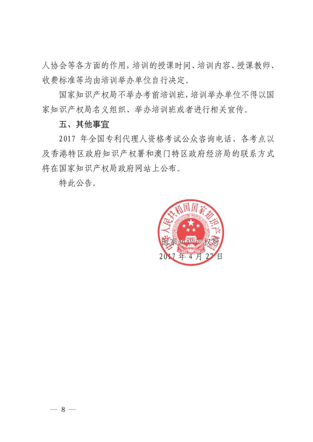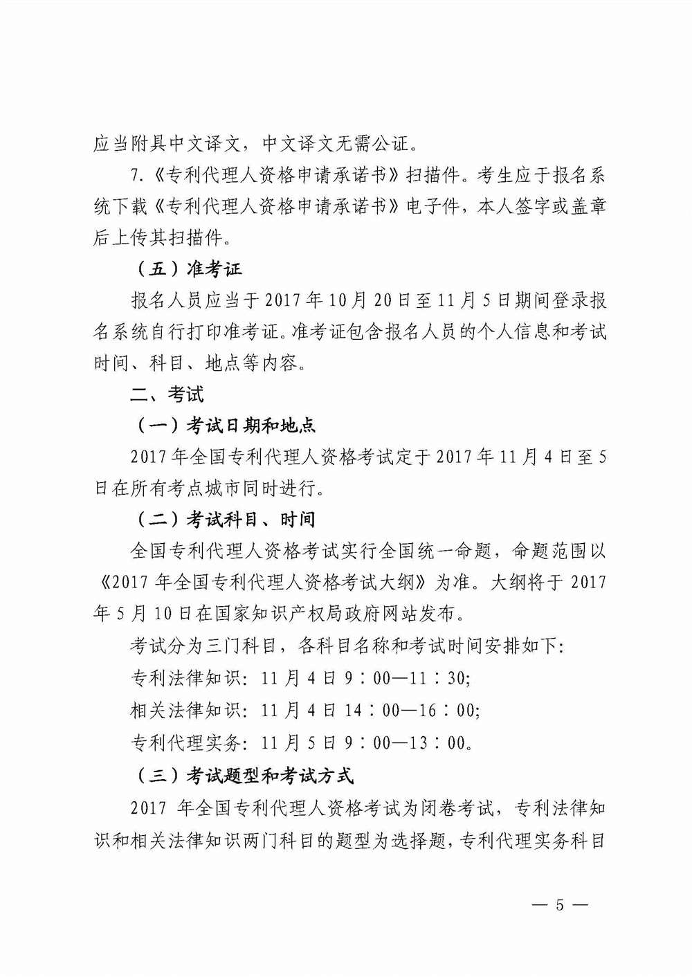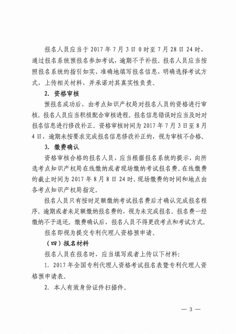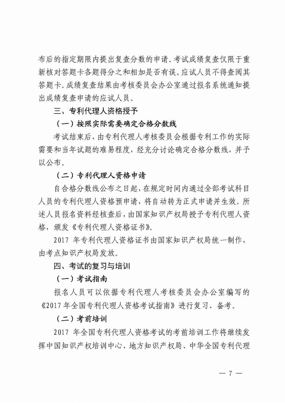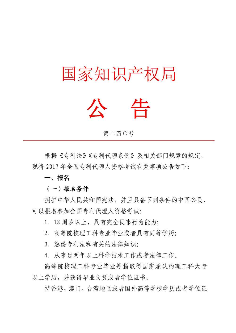 关于2017年全国专利代理人资格考试有关事项的公告(国家知识产权局第240号公告)