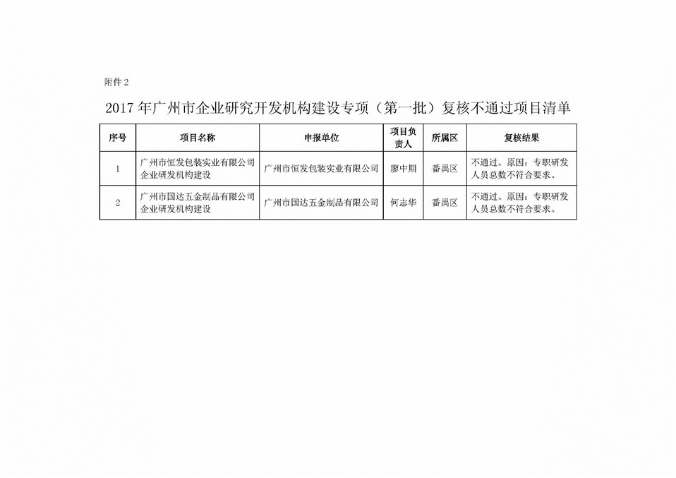 2. 2017年广州市企业研究开发机构建设专项(第一批)项目复核不通过项目清单.pdf