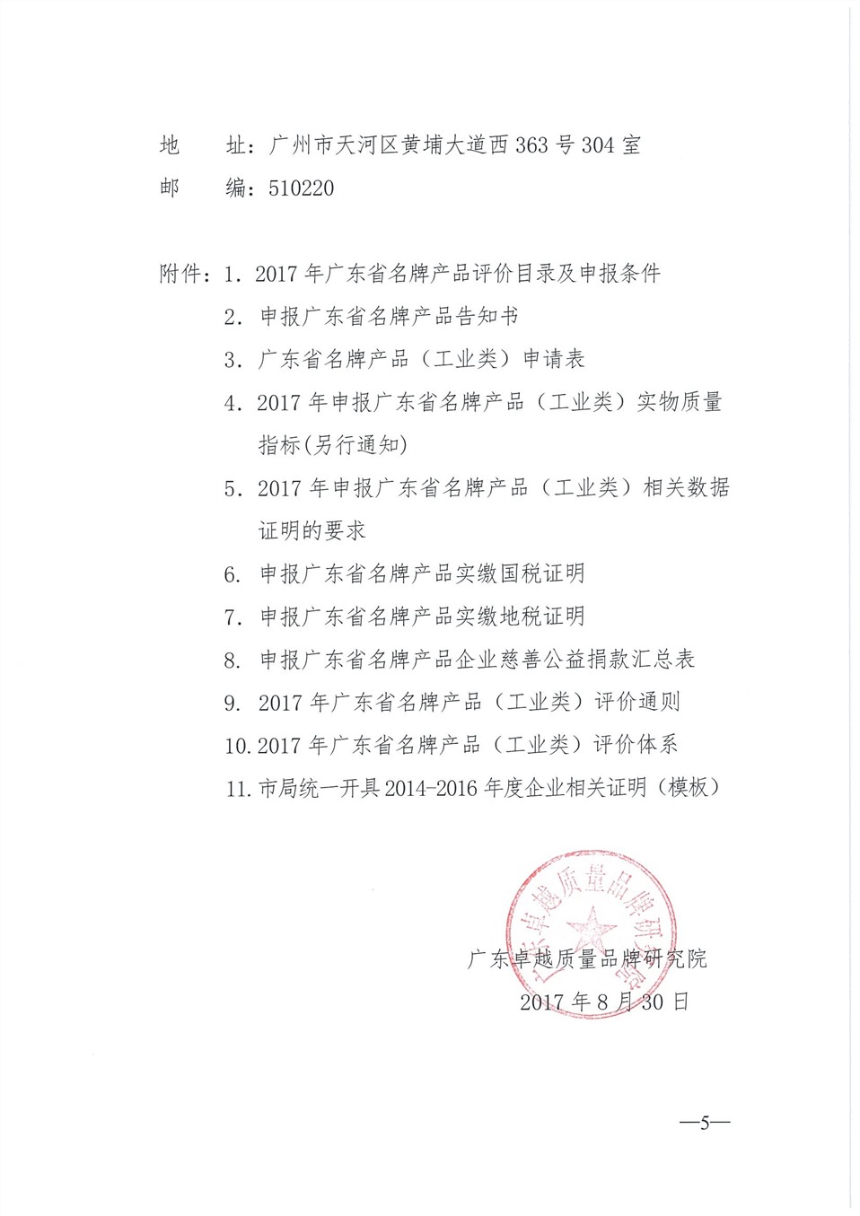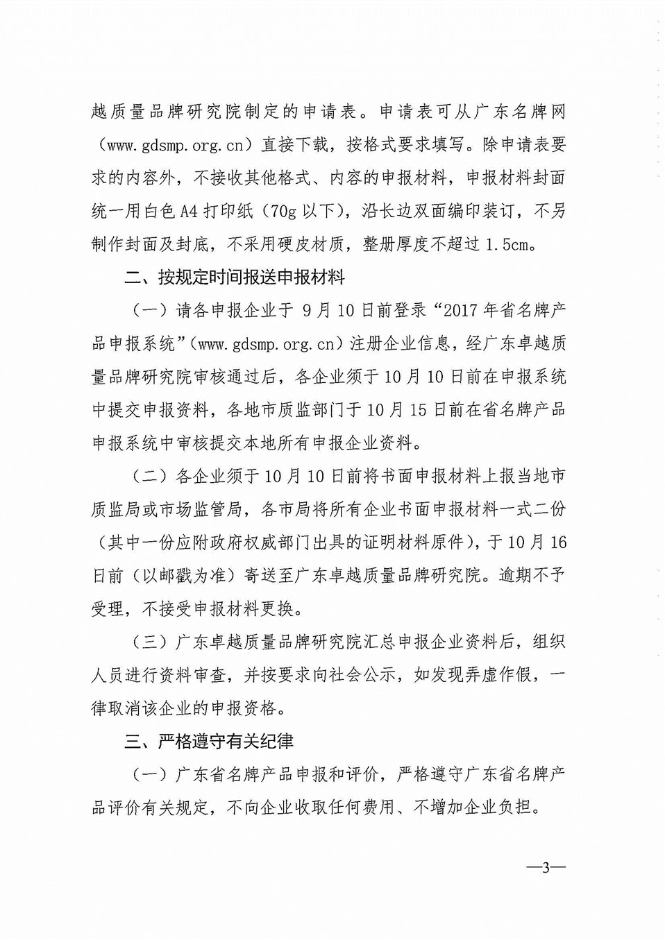 2017年广东省名牌产品(工业类)申报工作的通