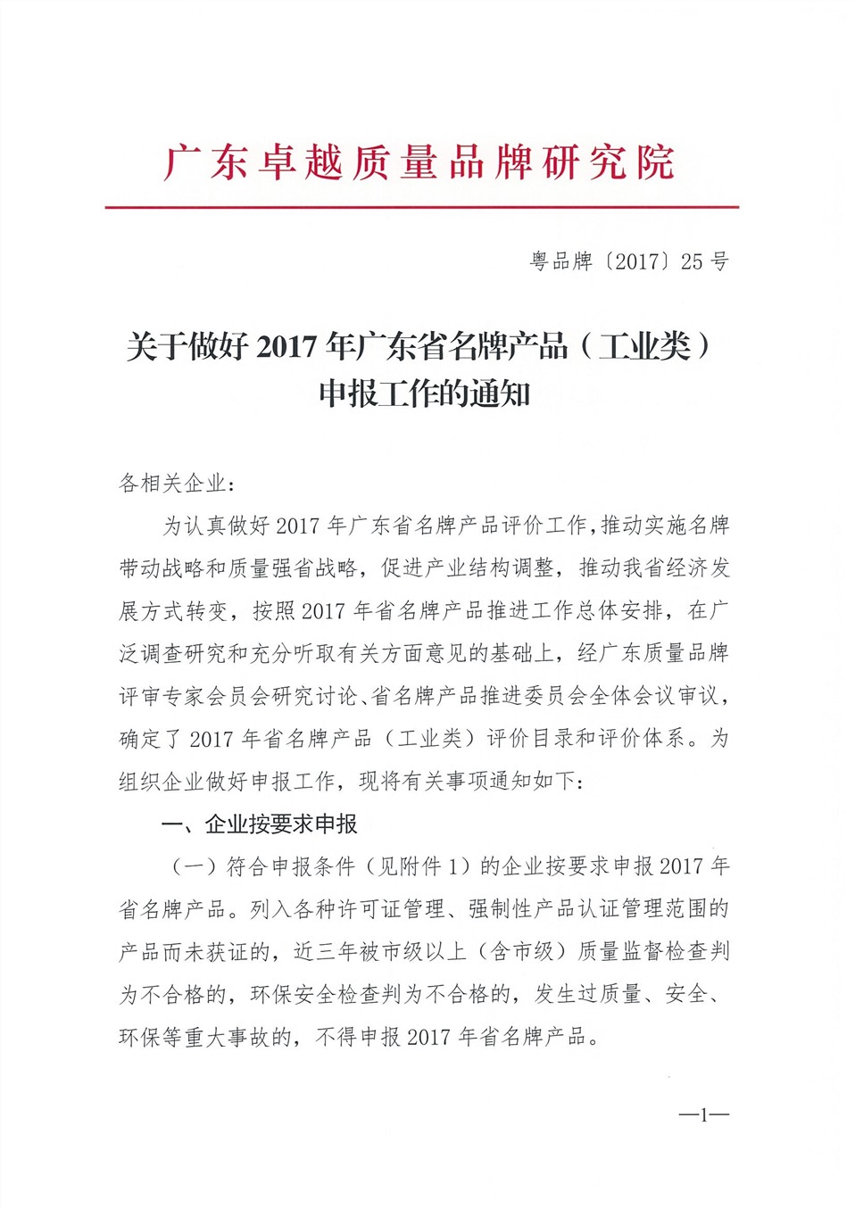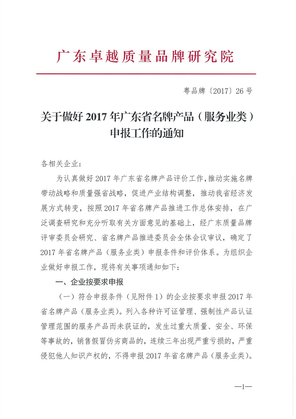 关于做好2017年广东省名牌产品(服务业类及工业类)申报工作的通知
