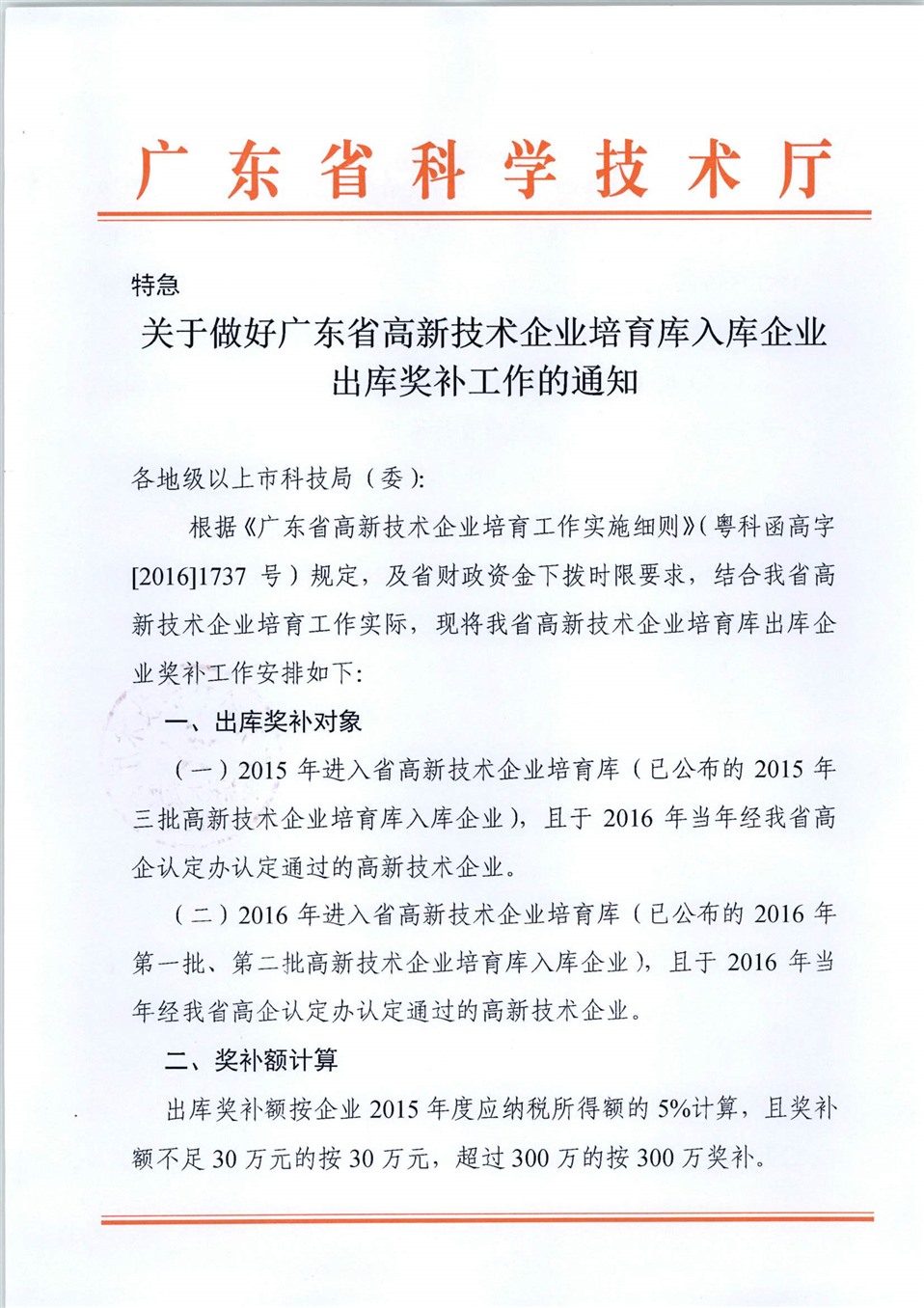 关于做好广东省高新技术企业培育入库企业出库奖补工作的通知
