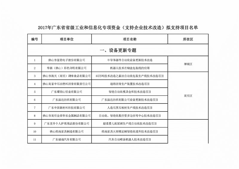 附件:2017年广东省省级工业和信息化专项资金(支持企业技术改造)拟支持项目名单