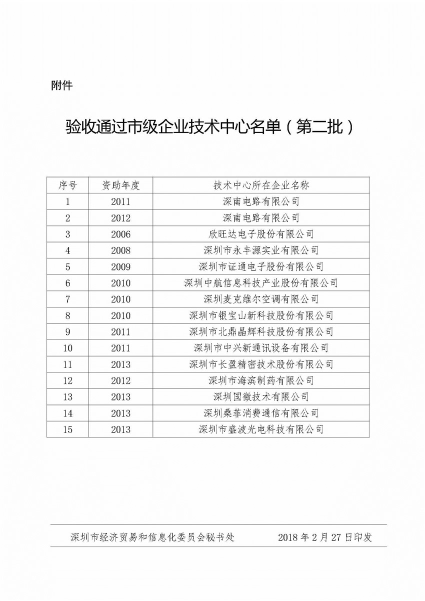 各有关企业: 按照有关规定,经我委组织审计验收,深南电路有限公司等15家单位申请验收的深圳市企业技术中心建设资助项目验收通过(见附件)。 特此通知。 附件:验收通过市级企业技术中心名单(第二批)