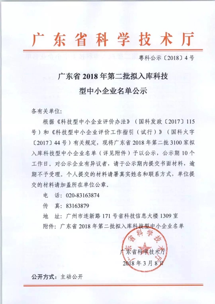 本通知及附件均可在科技型中小企业服务网站查阅及下载: http://www.innofund.gov.cn/xhtml/gs_detail.html?name=%E5%B9%BF%E4%B8%9C%E7%9C%812018%E5%B9%B4%E7%AC%AC%E4%BA%8C%E6%89%B9%E6%8B%9F%E5%85%A5%E5%BA%93%E7%A7%91%E6%8A%80%E5%9E%8B%E4%B8%AD%E5%B0%8F%E4%BC%81%E4%B8%9A%E5%90%8D%E5%8D%95%E5%85%AC%E7%A4%BA&imgUrl=/gongshiFile/7dc0cd2d-25d1-4ca9-9a12-2718416ea6fe.jpg&fileId=5ca2f371234111e8a5556c92bf6f0416&area=%E5%B9%BF%E4%B8%9C%E7%9C%81