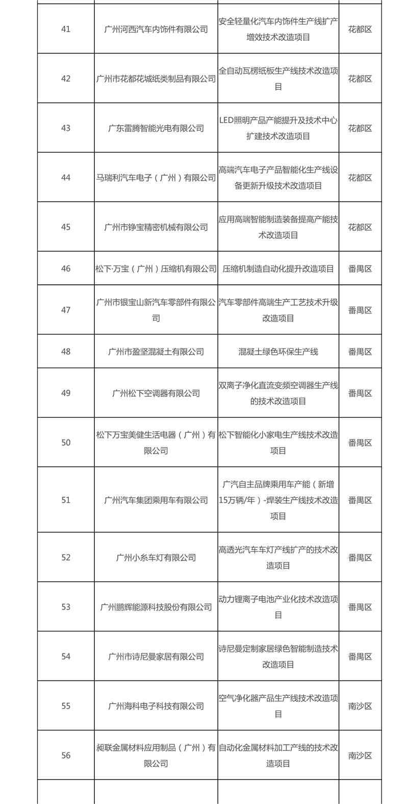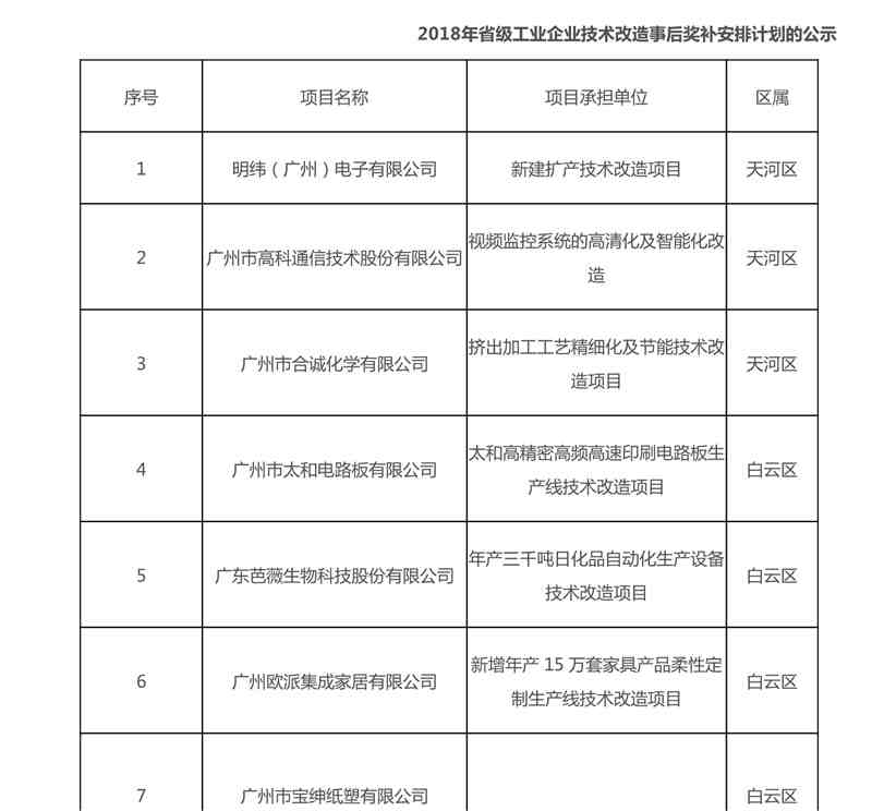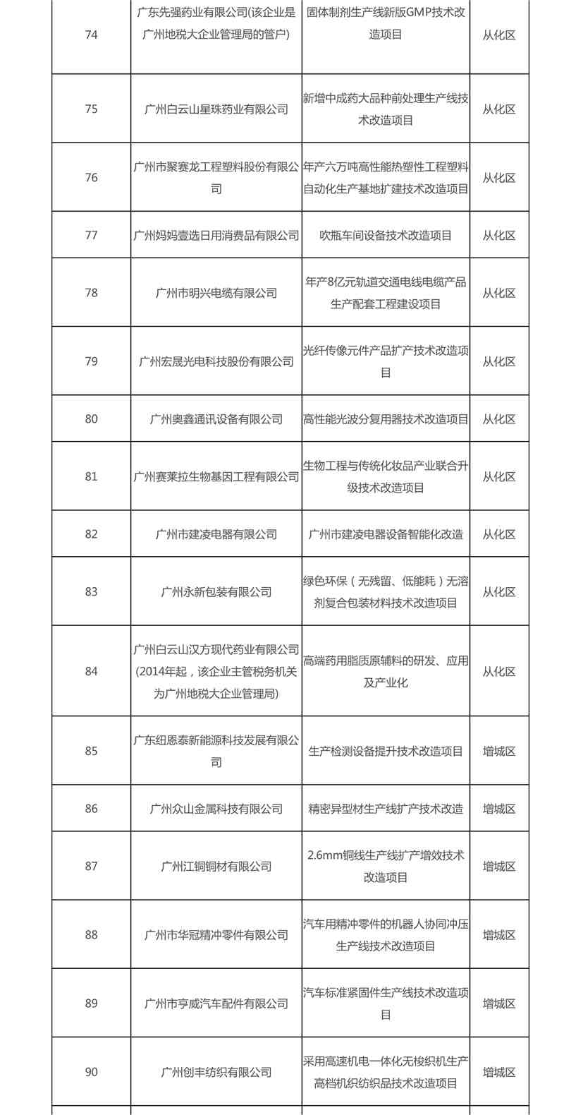 根据《广东省工业企业技术改造事后奖补实施细则》(粤经信技改〔2015〕439号)我委会同相关单位发布《广州市工业和信息化委广州市财政局广州市国家税务局广州市地方税务局广州市统计局关于组织申报2018年工业企业技术改造事后奖补项目的通知》(穗工信函〔2017〕2319号),经第三方机构对申报项目完工评价、区工信等部门的初审、项目现场核查、税收核算等工作后,经研究确定2018年省级工业企业技术改造事后奖补安排计划(见附件),现予以公示。 若对项目安排计划有异议,请于7月13日前以书面形式向我委反映。单位意见请加盖单位公章,个人意见请署实名,并注明具体联系方式。反馈意见以电话或电邮形式无效。 本通知原文链接: http://www.gzii.gov.cn/gzgxw/gxwwg/201807/67818b5bc6e34353af2f62482bfa3189.shtml 附件: