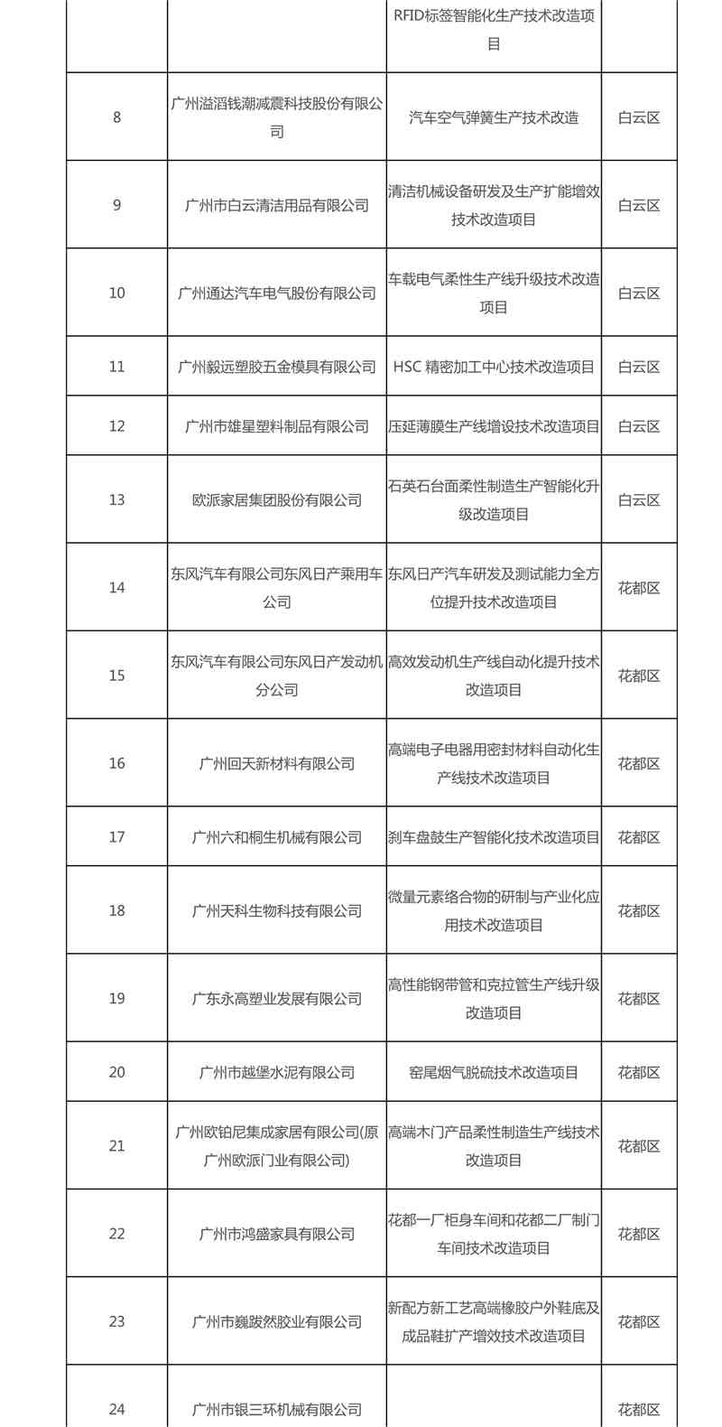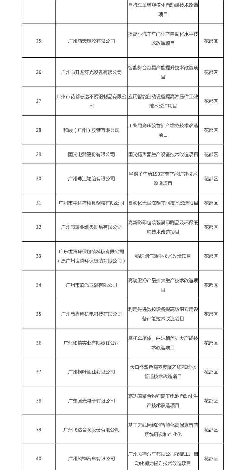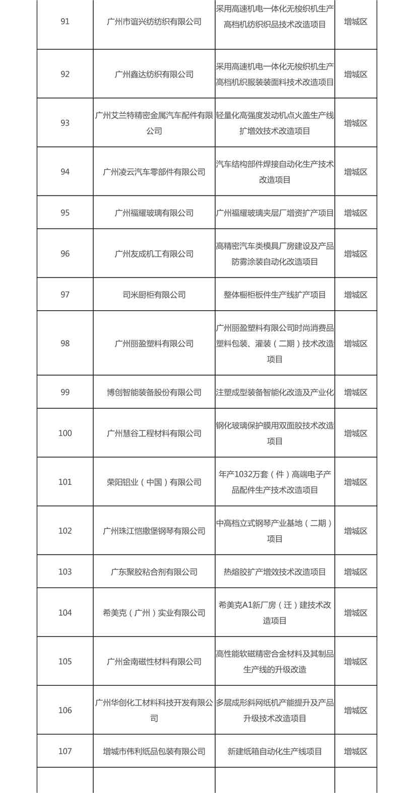 根据《广东省工业企业技术改造事后奖补实施细则》(粤经信技改〔2015〕439号)我委会同相关单位发布《广州市工业和信息化委广州市财政局广州市国家税务局广州市地方税务局广州市统计局关于组织申报2018年工业企业技术改造事后奖补项目的通知》(穗工信函〔2017〕2319号),经第三方机构对申报项目完工评价、区工信等部门的初审、项目现场核查、税收核算等工作后,经研究确定2018年省级工业企业技术改造事后奖补安排计划(见附件),现予以公示。 若对项目安排计划有异议,请于7月13日前以书面形式向我委反映。单位意见请加盖单位公章,个人意见请署实名,并注明具体联系方式。反馈意见以电话或电邮形式无效。 本通知原文链接: http://www.gzii.gov.cn/gzgxw/gxwwg/201807/67818b5bc6e34353af2f62482bfa3189.shtml 附件: