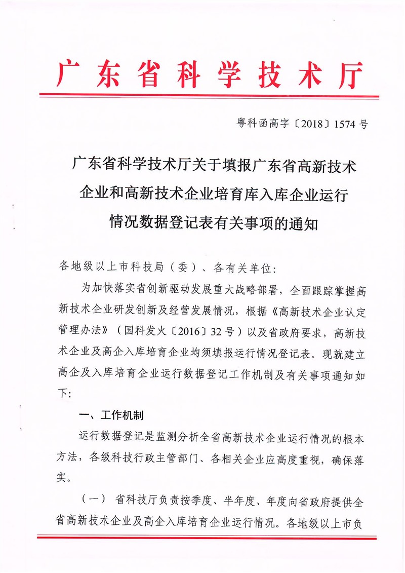 广东省科学技术厅关于填报广东省高新技术企业和高新技术企业培育库入库企业运行情况数据登记表有关事项的通知